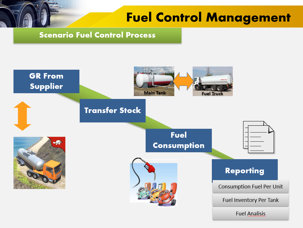 Fuel Management System adalah system untuk memanage, mengontrol dan monitoring penggunaan fuel. Dalam Fuel Management System, kita melakukan transaksi untuk penggunaan dan konsumsi fuel untuk tiap unit, baik unit yang kita kelola maupun tidak kita kelola. Dari inputan transaksi Fuel Consumption akan dihasilkan reporting berupa Consumption Fuel per Unit, Fuel Inventory per Tank serta Fuel Analisis