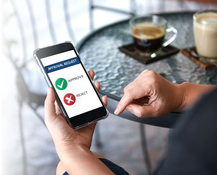 1. Dengan approval bisa di lakukan di mana saja berada, selama terhubung dengan internet.